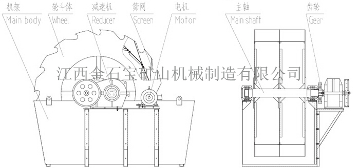 轮式洗砂机具有洗净度高,结构合理,处理量大,功耗小,洗砂过程中砂子流失少,尤其是洗砂机传动部分均与水、砂隔离,故其故障率大大降低。