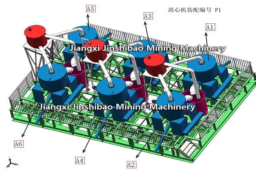 离心机是利用水通过离心力强制增加矿物的离心加速度,使矿物在离心旋转时得到相当于几十倍上百倍于重力加速度的状态,此时矿物的比重差被几十倍的放大,再配合反冲水来预防矿物板结,从而对细小的矿物达到理想的选矿效果。