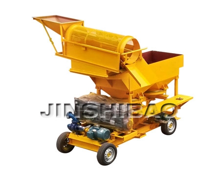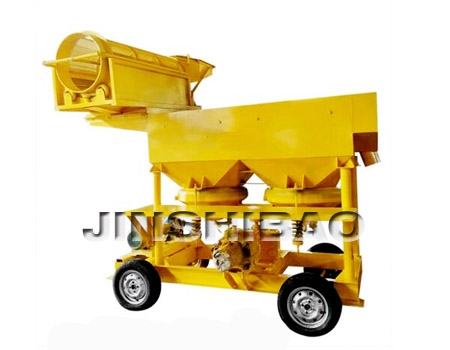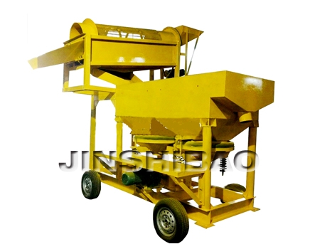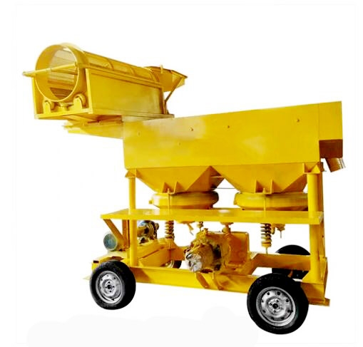 滚筒跳汰一体机又名移动式黄金选取设备,是一种主要用于砂金矿分选的机械设备,可移动的采金设备,可由人工上料或装载机上料到达料仓,由滚筒筛或者绞桶进行物料的筛分。整套淘金设备适合于古河道,山岭,戈壁滩含泥量高的矿体。本设备每天处理量300-500吨相当于一个小型选厂,重矿物富集比高,回收率可达98%以上。